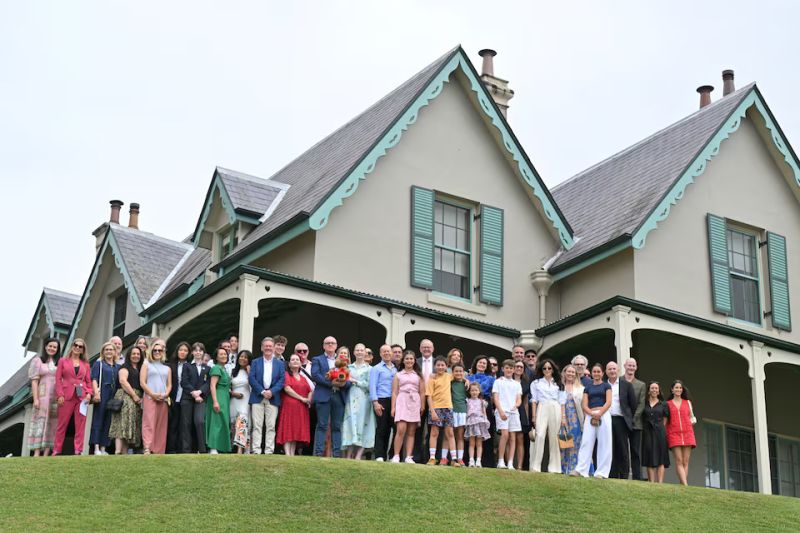 P.S. Prime Minister Anthony Albanese poses with families and stakeholders during an event to mark the beginning of the social media ban for children under 16 years of age, at Kirribilli House in Sydney, Australia, December 10, 2025. AAP/Mick Tsikas/via REUTERS
